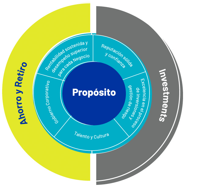 El planteamiento estratégico tiene como centro nuestro propósito conjunto y superior, que se apalanca en unos imperativos estratégicos, que son elementos comunes y transversales a todos los negocios, países y equipos, y que nos hacen SURA Asset Management y permean las acciones de quienes conforman la Compañía. La materialización se lleva a cabo desde los grupos de negocio y unos lineamientos propios, que responden a las necesidades según sus objetivos y particularidades, como líneas y rutas de acción unificadas dentro de cada mundo y que marcan el paso para las compañías, negocios y localidades.